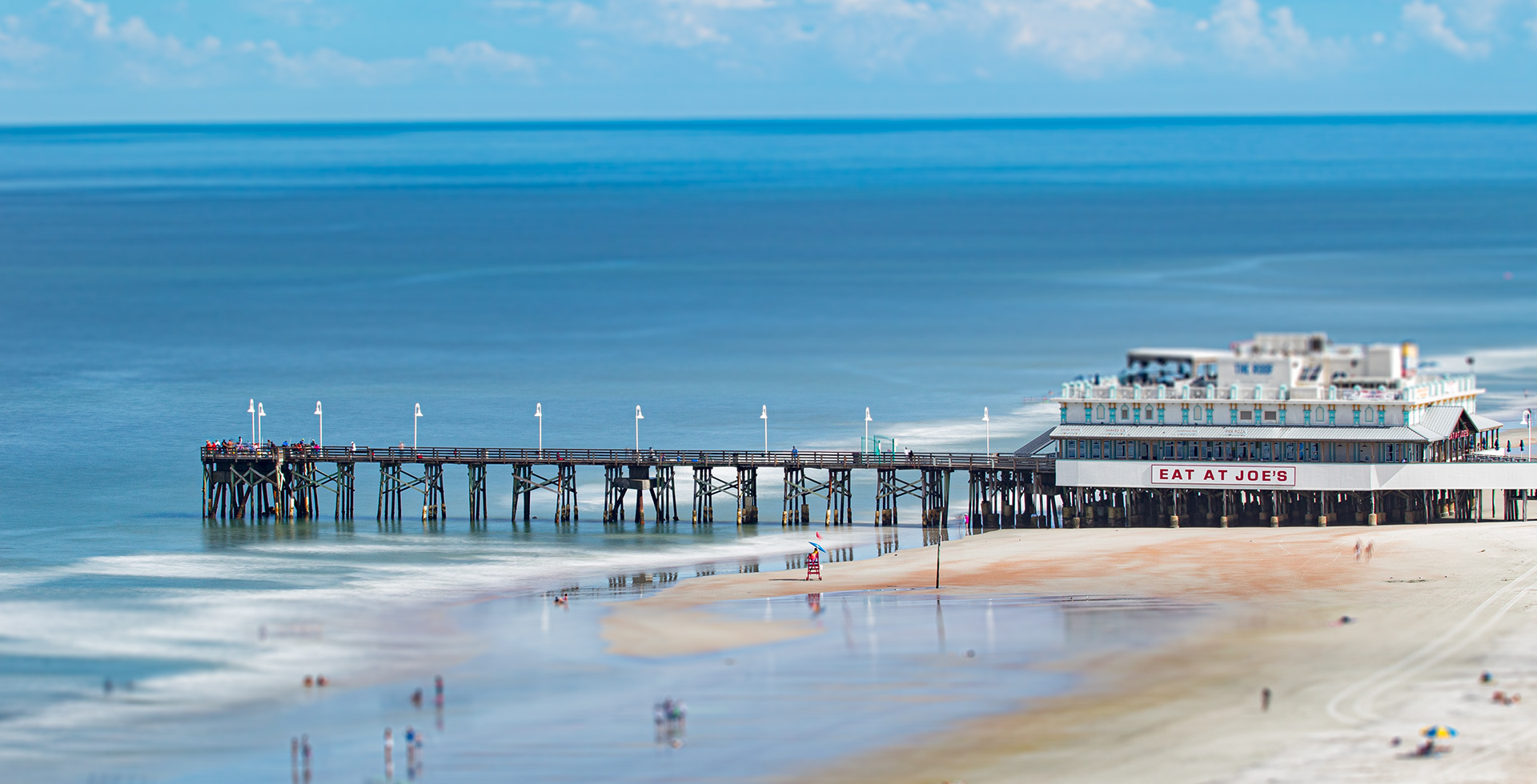Long exposure and Tilt Shift Effect of Joe's Crab shack restaurant and Daytona Fishing Pier, Florida