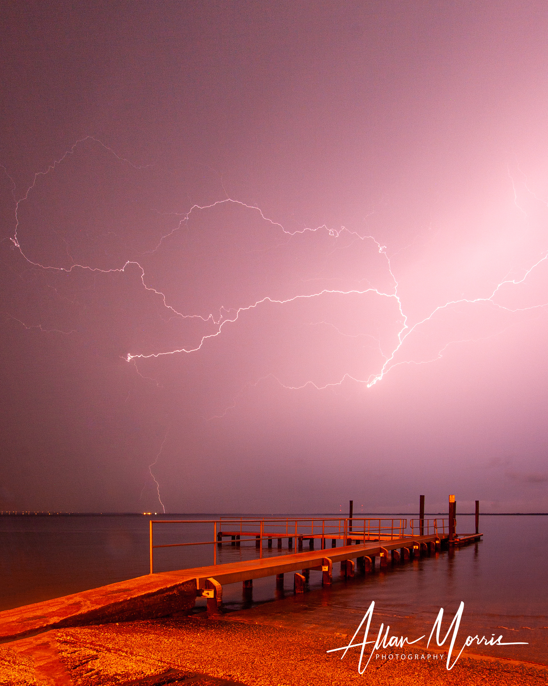 Lightning strikes at Courtney Campbell Boat Ramp in Tampa Florida